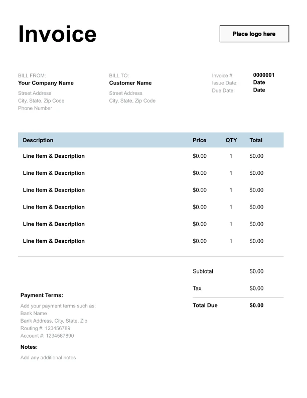 Download a template, then edit in PDF, Word, Excel, Google Docs or Google Sheets. Print or email when ready.