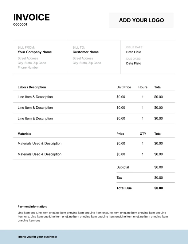 Free invoice templates for Body Piercers built for piercing service, body jewelry, and sterilization fees. Download and edit in PDF, Word, Excel, Google Docs, or Google Sheets.