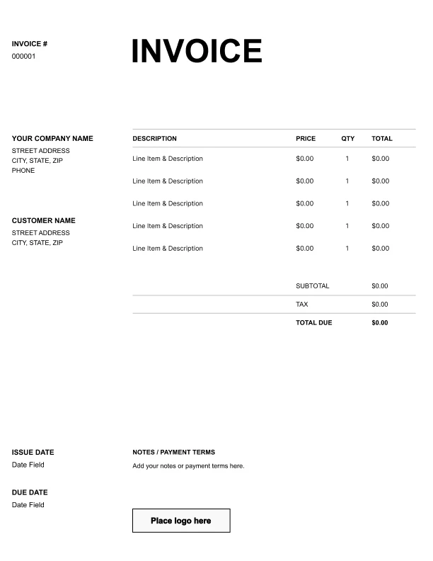 Download a template, then edit in PDF, Word, Excel, Google Docs or Google Sheets. Print or email when ready.