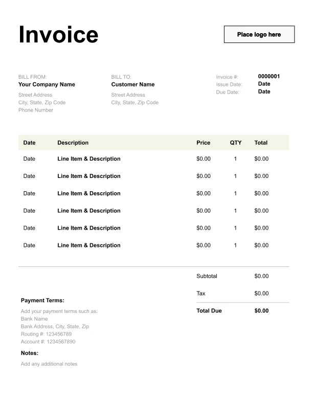 Download a template, then edit in PDF, Word, Excel, Google Docs or Google Sheets. Print or email when ready.