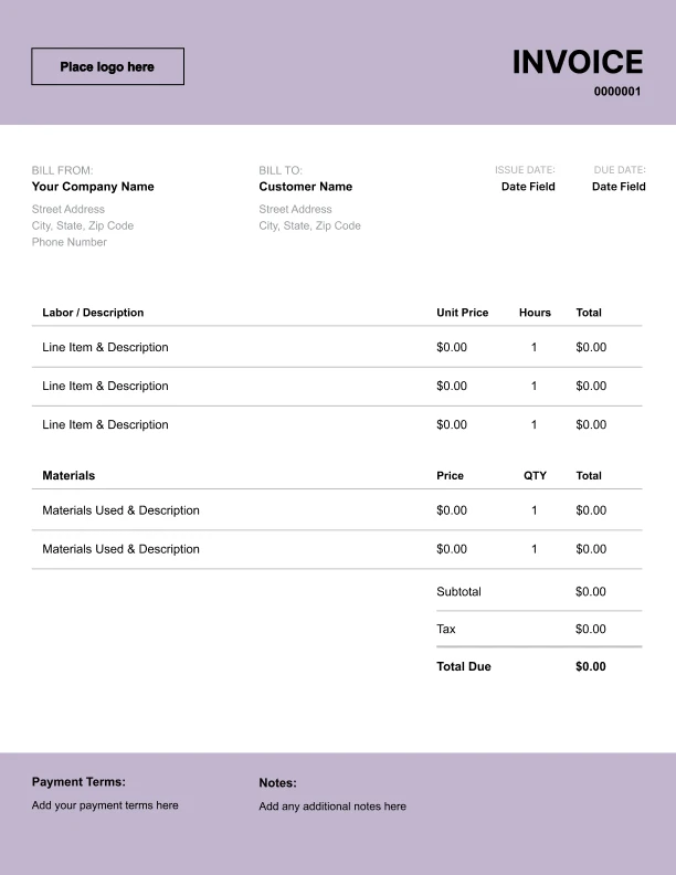 Free invoice templates for environmental service providers built for labor, materials, and lab testing fees. Download and edit in PDF, Word, Excel, Google Docs, or Google Sheets.
