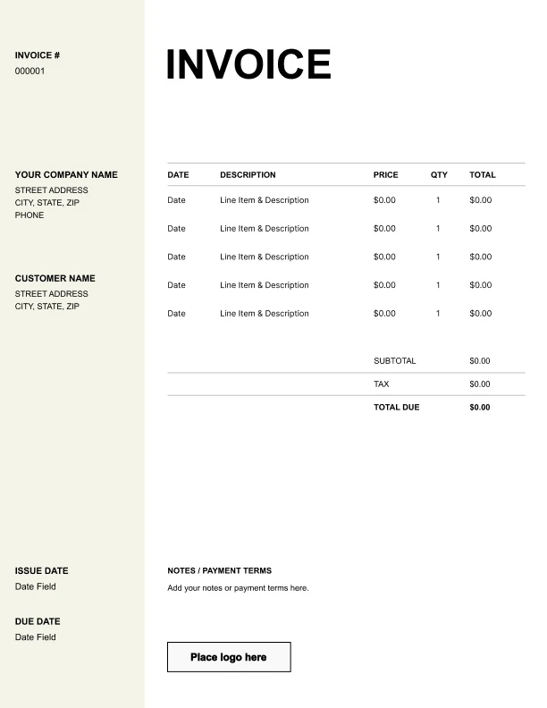 Free invoice templates for home stagers built for furniture rentals, delivery and pickup, and installation and de-staging. Download and edit in PDF, Word, Excel, Google Docs, or Google Sheets.