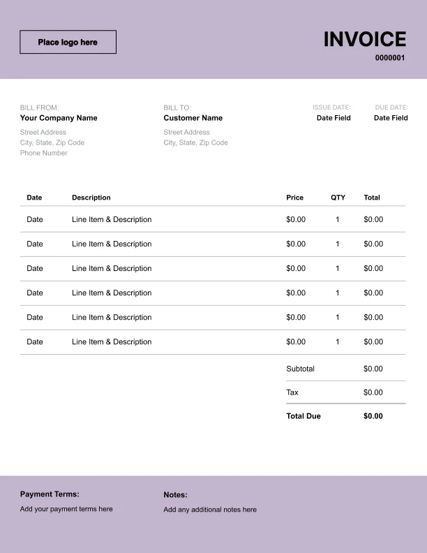 Itemize freight, fuel, pickup and delivery, warehousing, and accessorials with professional invoice line items.